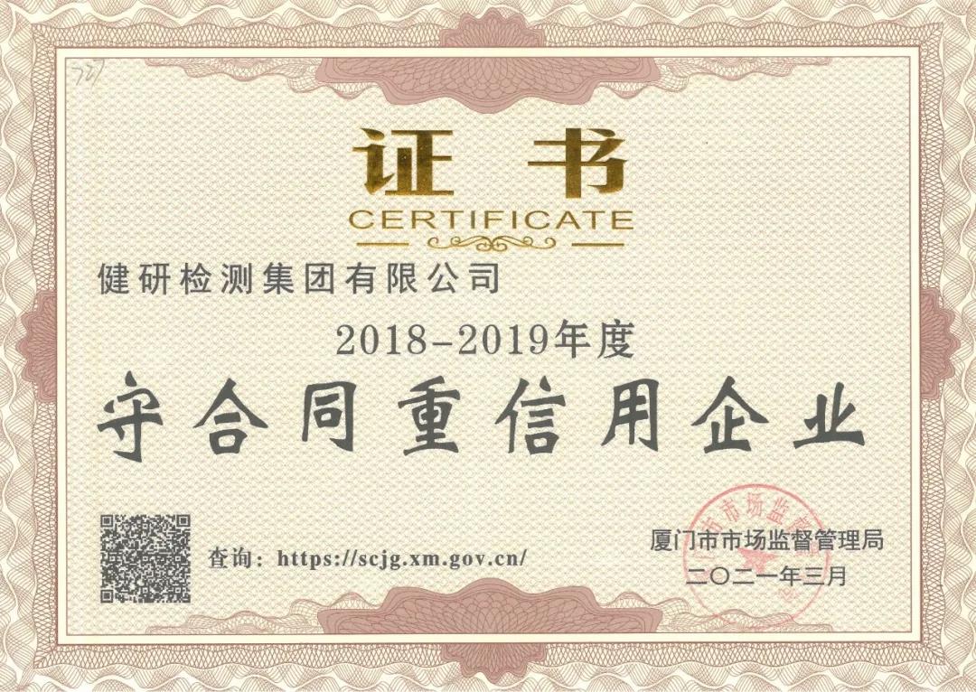 z6com官网登录入口控股集团股份有限公司、健研检测集团有限公司被厦门市市场监视治理局评为 “2018—2019年度守条约重信用企业”。。。。。。